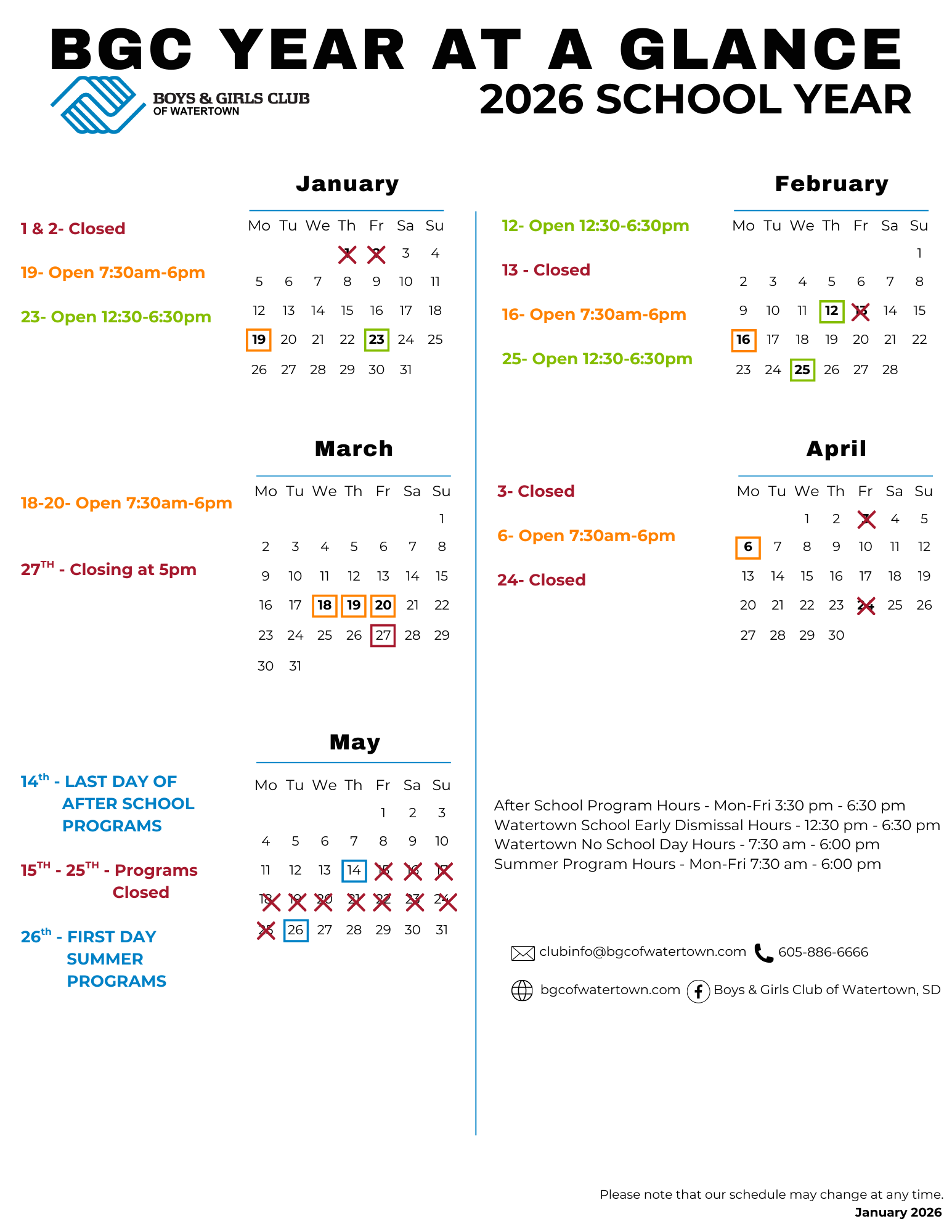 Youth Special Programs Calendar